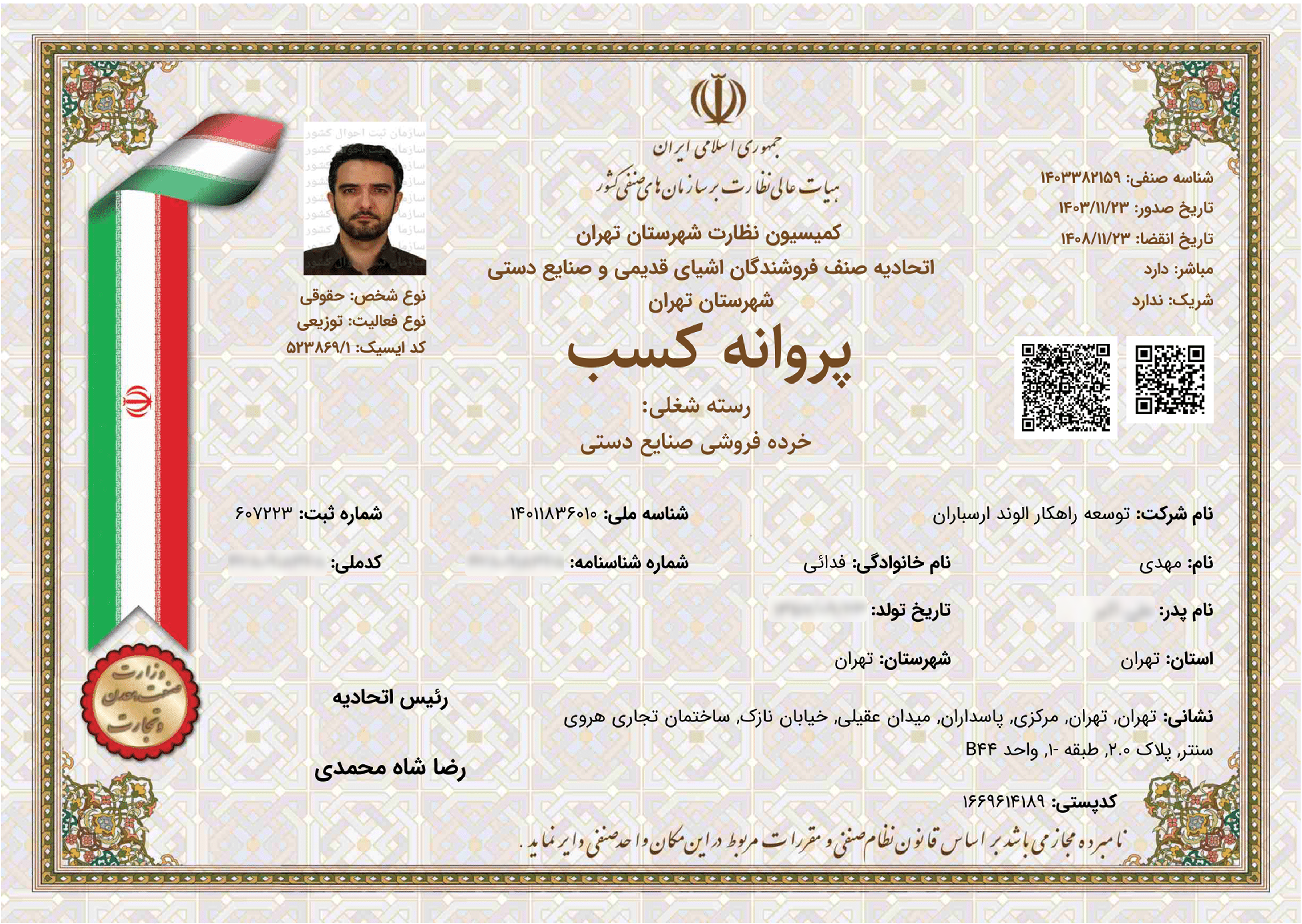 مجوز اتحادیه فروشندگان اشیای قدیمی و صنایع دستی
